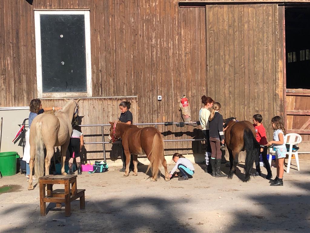 Ouvert aux enfants âgés de 5, 6 et 7 ans. Ce stage se déroule en 1/2 journée. Il permet aux plus jeunes de s’initier à l’équitation avec nos poneys. Ils découvriront ce sport grâce à des activités ludiques et adaptées à leurs âges. Ils pourront monter sur les poneys et également profiter de moments de détente en s’occupant des poneys mais aussi avec des activités variées telles que coloriages, théorie, jeux de ballons, etc…..